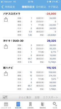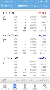 先月と比べ、打った機種が大幅に減っています。