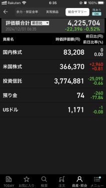 楽天証券 4,225,704円(+75,015円)