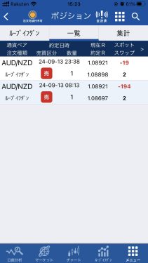 長期的には1.1~1.00をうろうろしているので、現在1.0889と高値圏であること、売方向だとプラススワップ(現時点で1万通貨で23円)